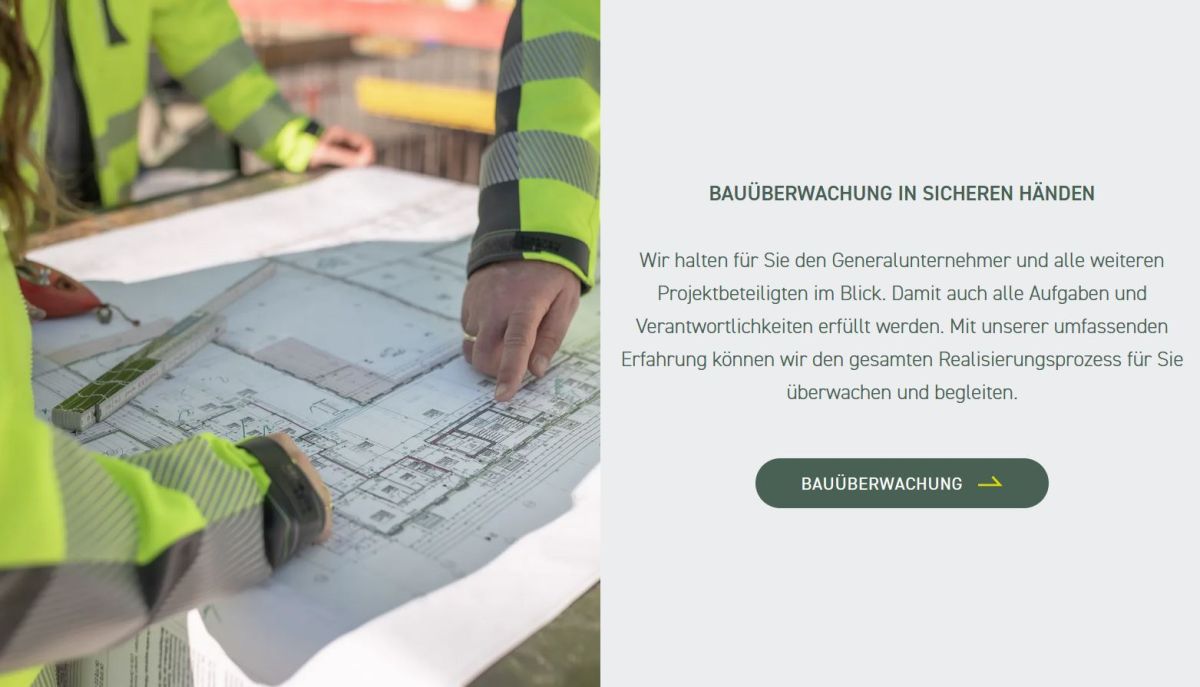 Im Rahmen unserer Bauüberwachung erarbeiten wir eine individuelle, auf das Projekt und das Prozessumfeld maßgeschneiderte Lösung. Diese optimiert bei modernen Abwicklungsmodellen die Schnittstellen und ist im Vergleich zur klassischen Objektüberwachung effizienter. Durch den Fokus auf einen konsolidierten Informationstransfer zwischen Bauherr und Baustelle minimieren wir Fehlerquellen und übernehmen die aktive Kontrolle und Überwachung der Baustelle mit all ihren Prozessen und Beteiligten.