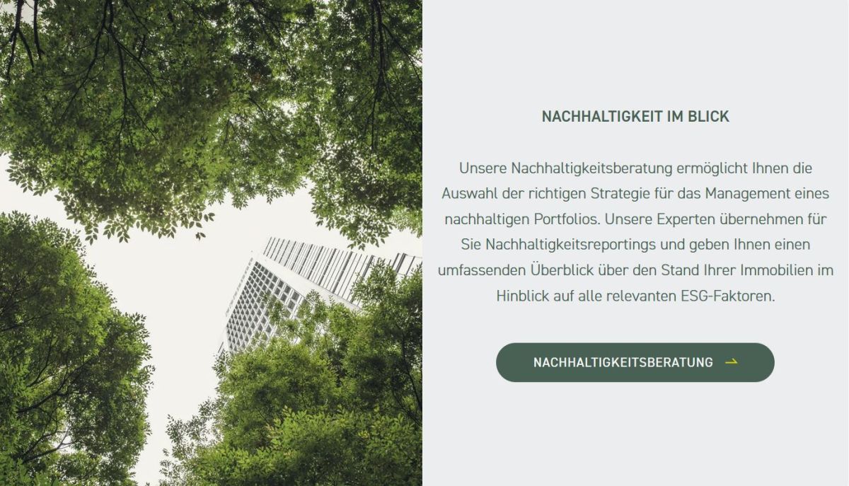 - Strategische Nachhaltigkeitsberatung und ESG-Reportings (z. B. GRI, DNK, GRESB) auf Unternehmens-, Fonds- oder Objektebene