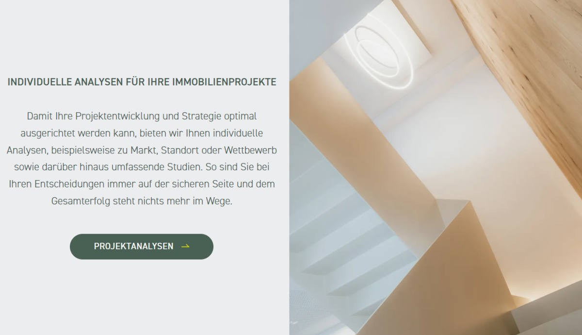 Dieses Mal geht es um unsere Projektanalysen aus dem Bereich Entwicklung + Innovation. Hier erstellen wir für unsere Kunden wie Kommunen, Stiftungen, Projektentwicklern und Investoren individuelle Analysen. Beispielsweise zur Marktsituation, dem Standort oder Wettbewerb sowie darüber hinaus umfassende Studien für eine optimal ausgerichtete Projektentwicklung und -strategie.