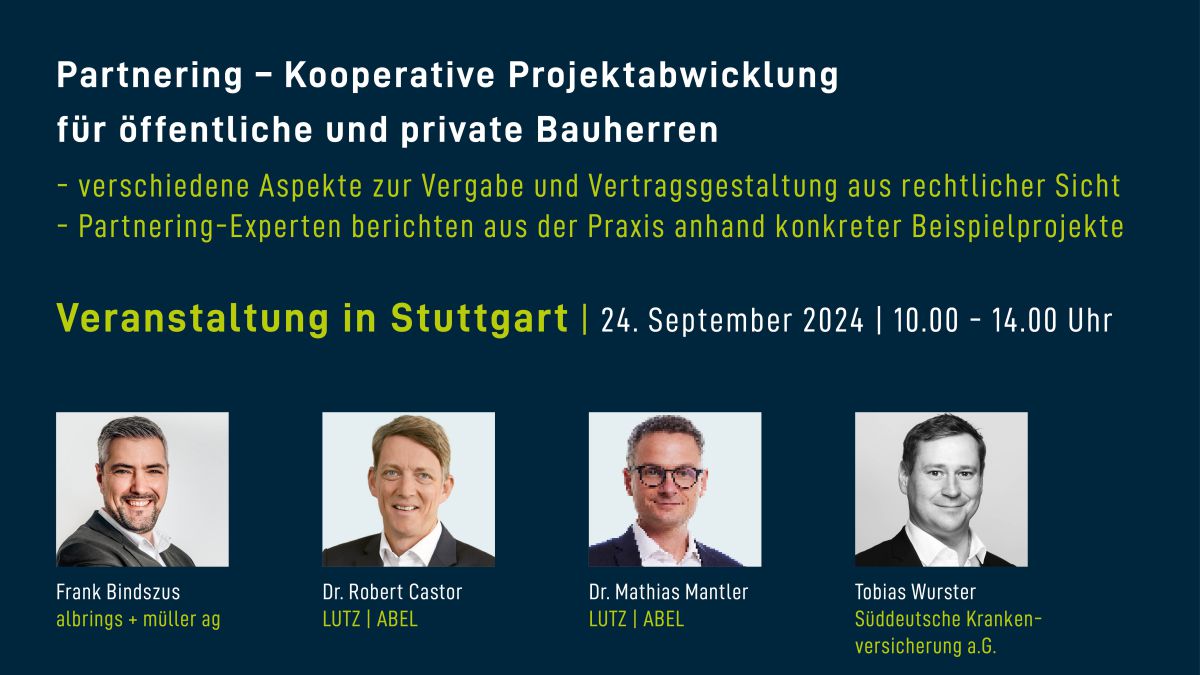 Gemeinsam mit LUTZ | ABEL Rechtsanwalts PartG mbB bieten wir erneut spannende Einblicke in innovative Kooperationsmodelle der Projektabwicklung und schaffen eine wertvolle Plattform für den Austausch zwischen Bauherren, Planern und Projektverantwortlichen.