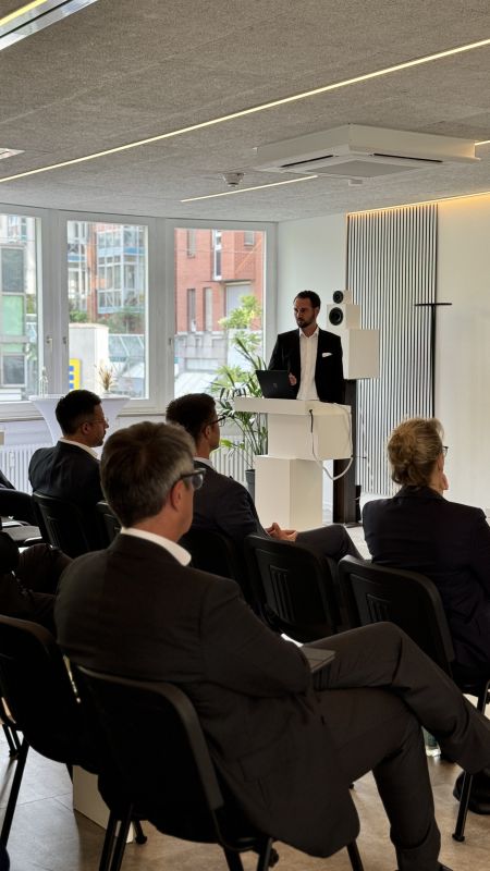 Nach der Begrüßung durch Steffen Müller gaben Julian Wißmann und Dr. Christian Kron wertvolle Einblicke in die aktuelle Marktlage und präsentierten eine aufschlussreiche Case Study zu unserem Projekt Südstadtbogen in Neu-Ulm. Frederic Jürgens und Dr. Raoul Kreide erläuterten innovative Lösungen zur Vermeidung von Baustopps und die strategischen Chancen durch Eigenverwaltung und StaRUG.