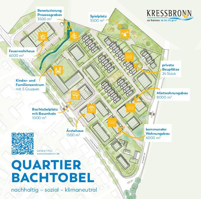 Das neue Wohnquartier wird 80 Wohneinheiten in 6 Mehrfamilienhäusern umfassen. Mit energieeffizienter Holzbauweise und KfW-55-Standard entstehen hier erschwingliche, umweltfreundliche Wohnräume für die Menschen in Kressbronn.
