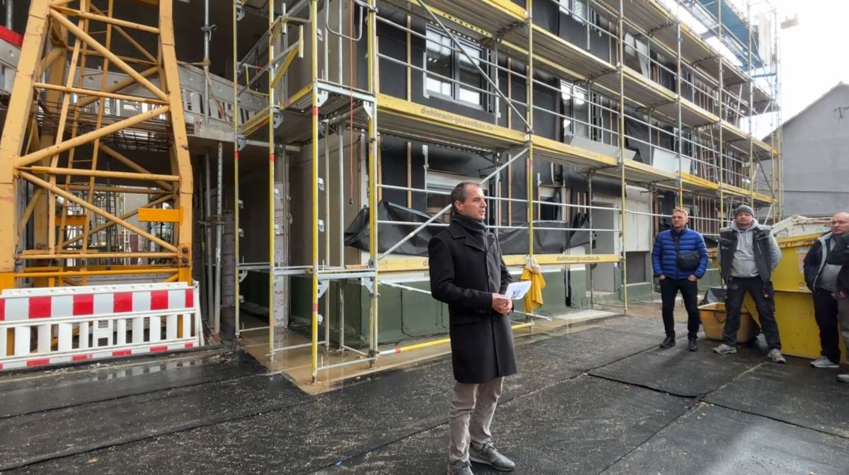 Nach dem Abbruch der nicht mehr zeitgemäßen innerstädtischen Bestandsbebauung startete Anfang 2023 die Errichtung des Rohbaus. Bis zum Jahr 2024 entstehen zwei Häuser mit 20 Wohnungen – davon 75% als geförderter Wohnungsbau – sowie eine Arztpraxis. Über die gesamte Projektlaufzeit hinweg verlief der Fortschritt im geplanten Zeitfenster.