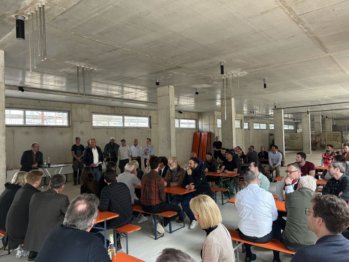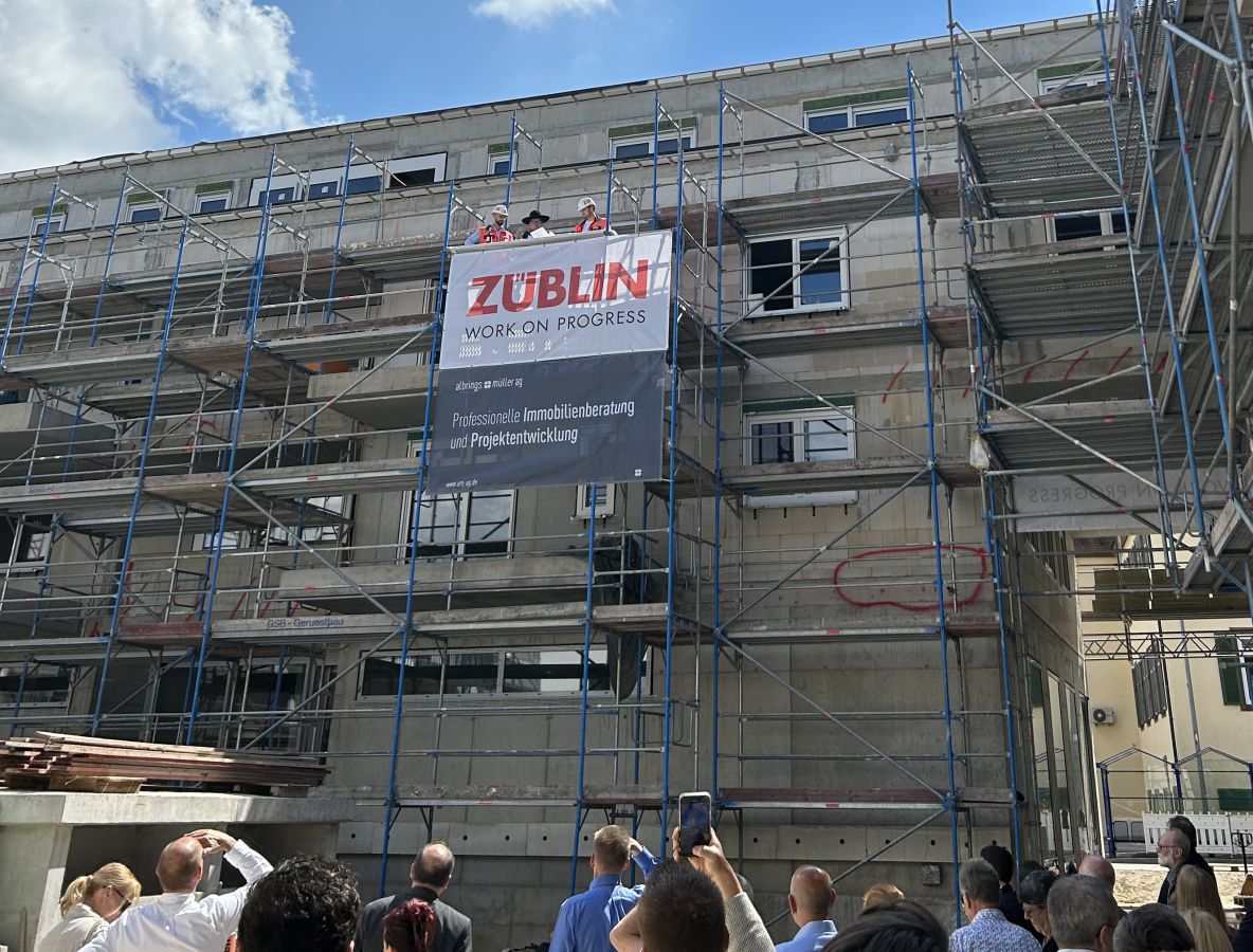 Nach dem feierlichen Richtspruch durch Stefan Renner, Polier bei Züblin, nutzte man die Gelegenheit zum Austausch über die nächsten Schritte und Erfolge bei italienischem Fingerfood und Kaltgetränken.