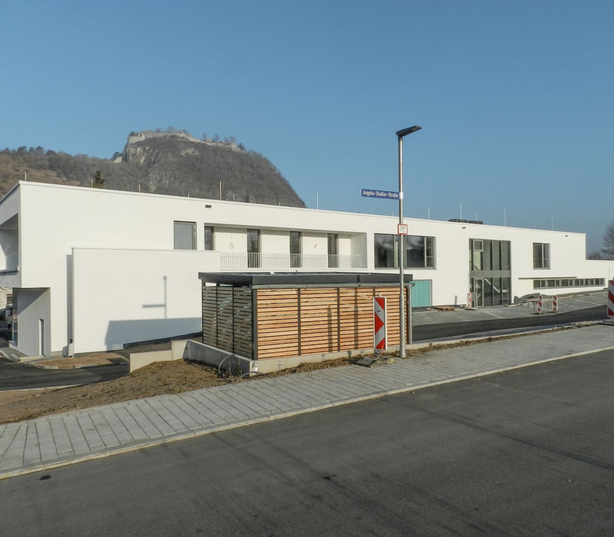 Die ca. 24 Jahre alte Rettungswache des Deutschen Rotes Kreuz Kreisverbandes Landkreis Konstanz e. V. (DRK) entsprach seit einigen Jahren nicht mehr den Anforderungen an eine moderne Rettungswache. Die Rettungsfahrzeuge passten aufgrund der größeren Aufbauten kaum noch ins Gebäude. Der Platz für die ca. 60 Mitarbeiter wurde zudem sehr eng. Ein neues Gebäude war erforderlich, indem neben dem Platzangebot insbesondere auch die täglichen Abläufe optimal erfolgen können.